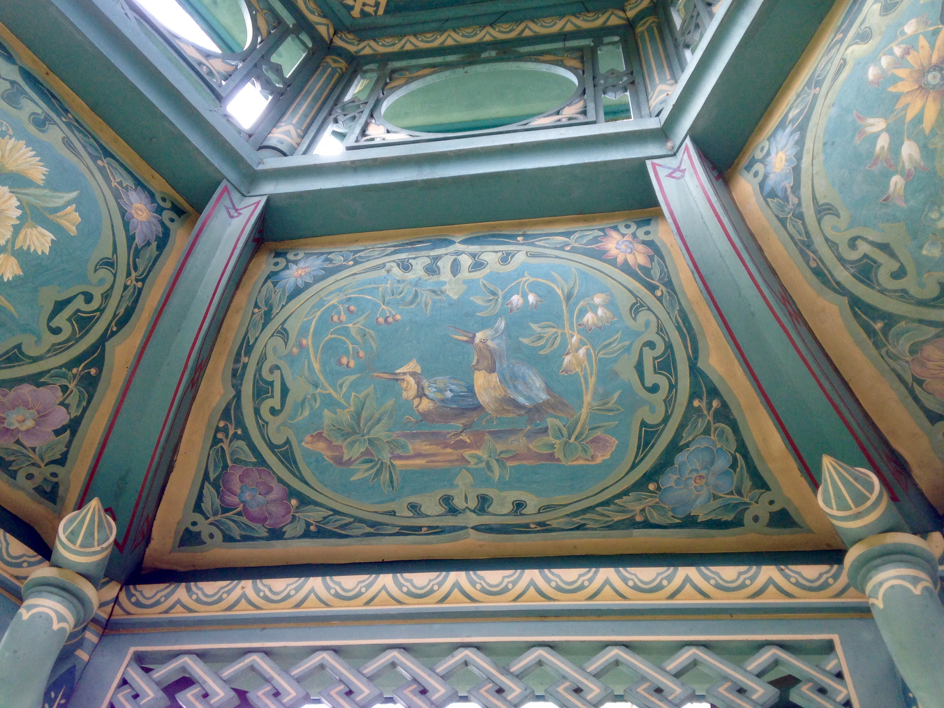 Pink flowers :A charming Chinese kiosk :