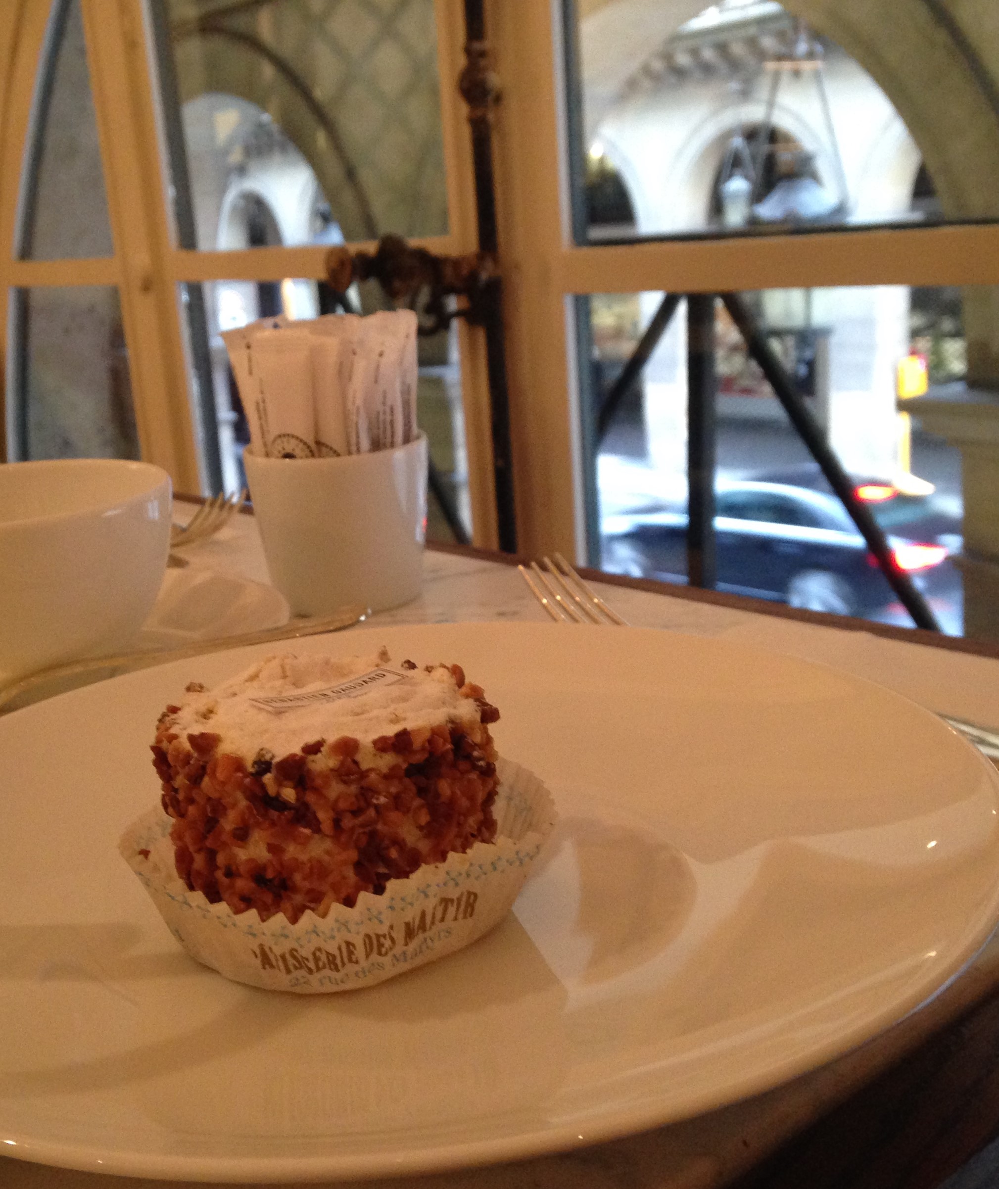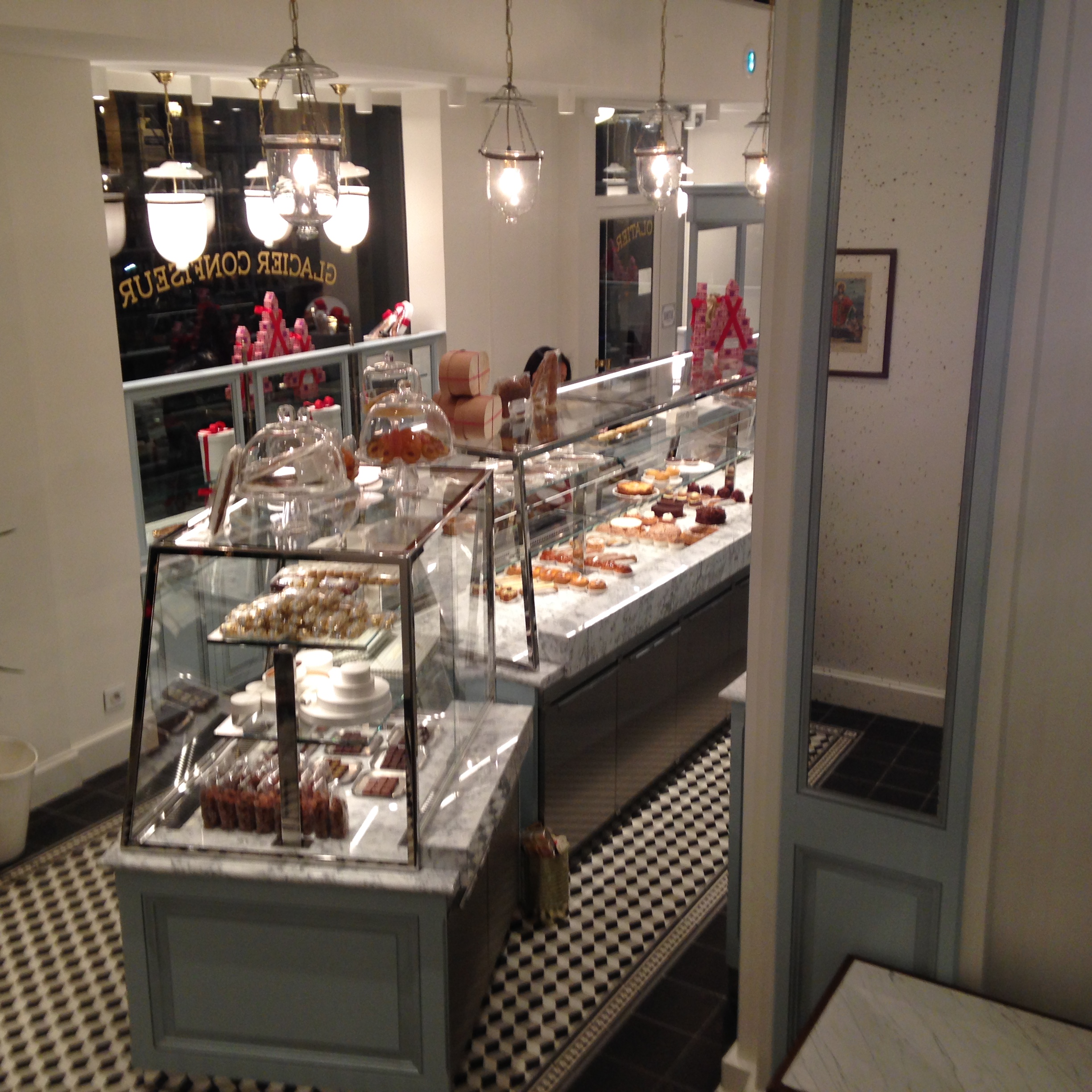 I tasted the savoring pastry “Mussipontain” (an almond passover with a vanilla cream and caramelized almonds). The tea selection is large and some perfumed tea are homemade. I tasted the SG black tea and it was delicious. My favourite Sébastien Gaudard’s pastries are the Mussipontain and the Montmorency (pistachio and cherries).