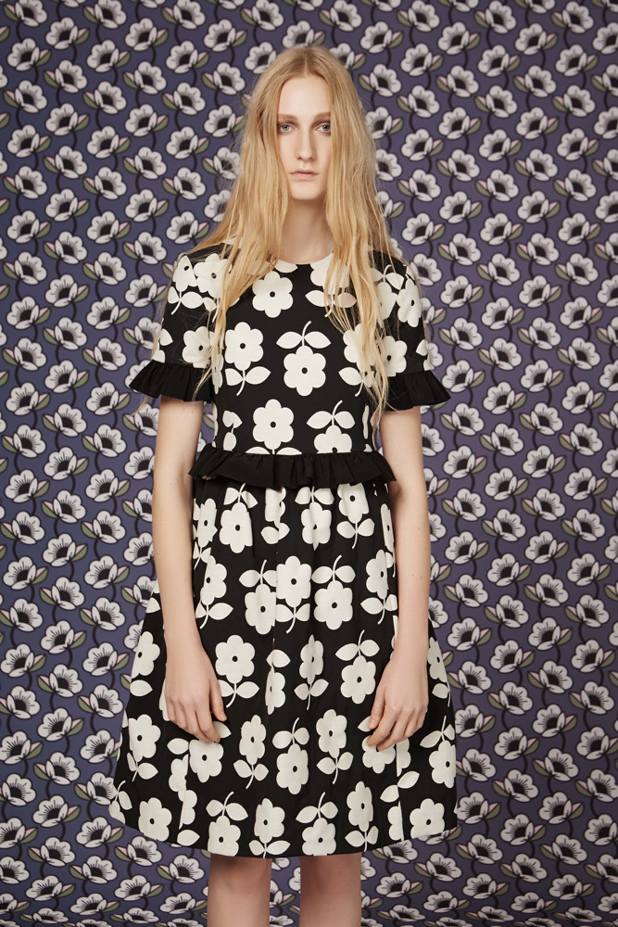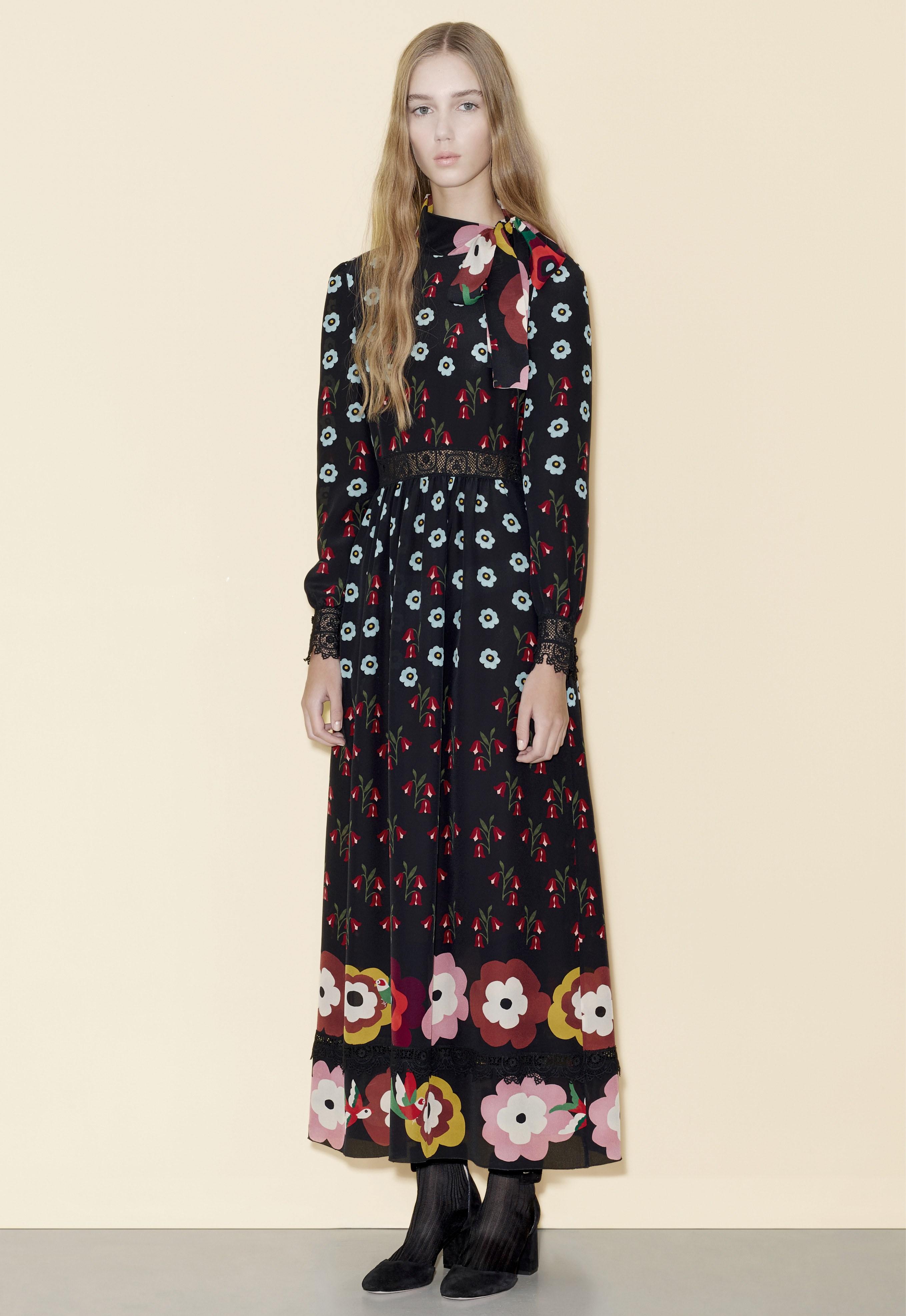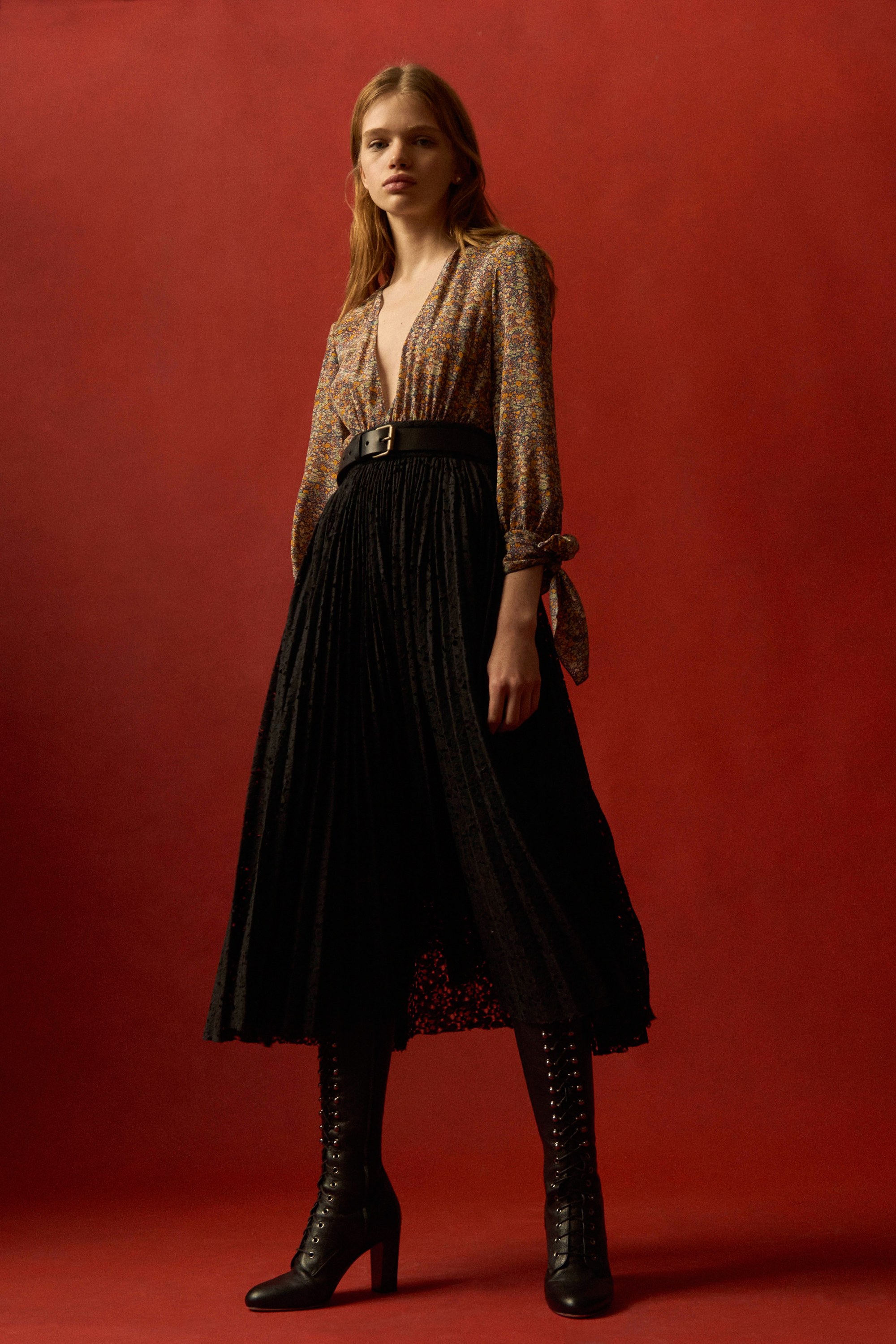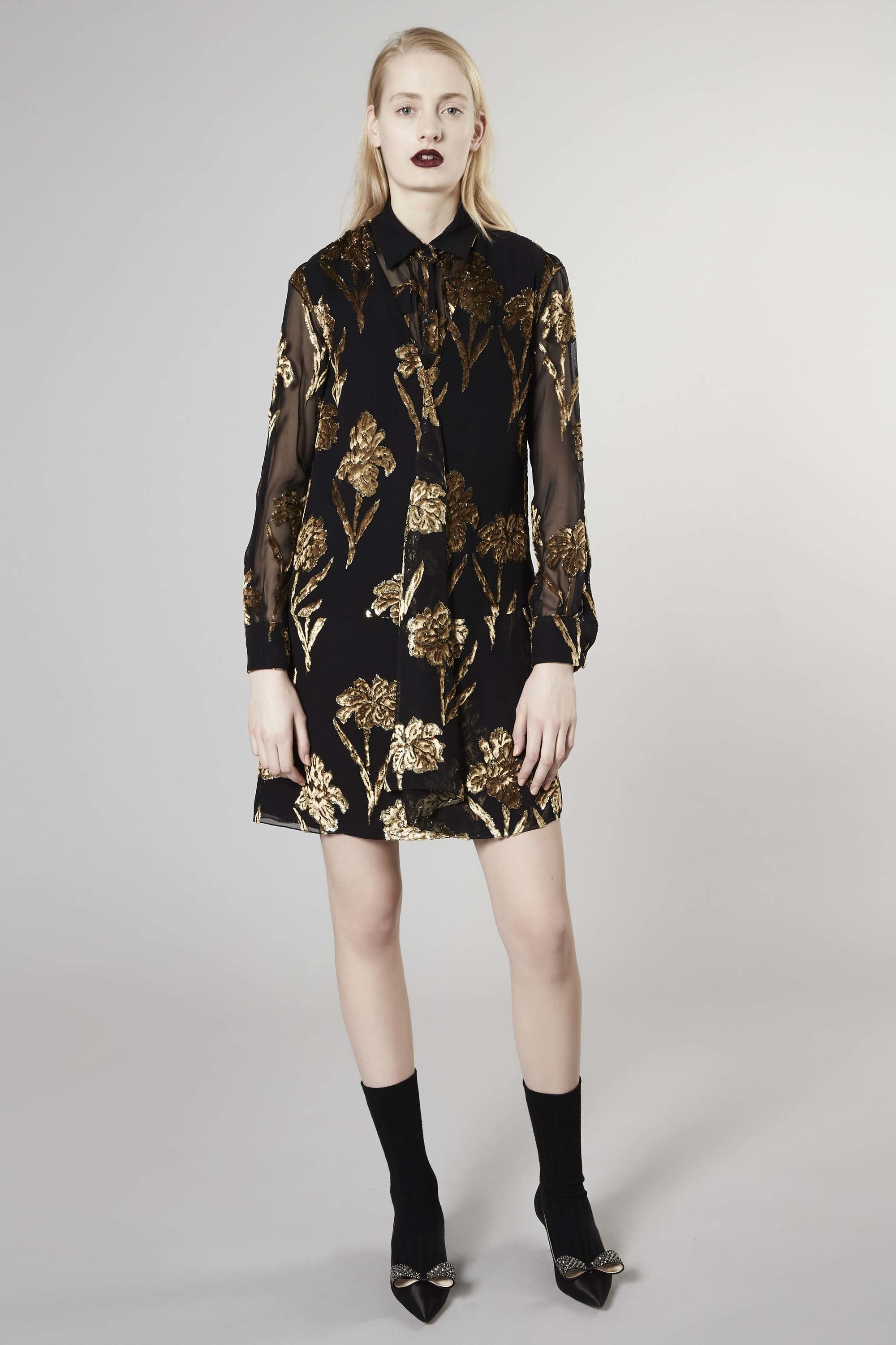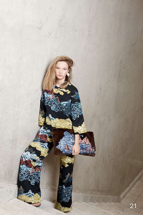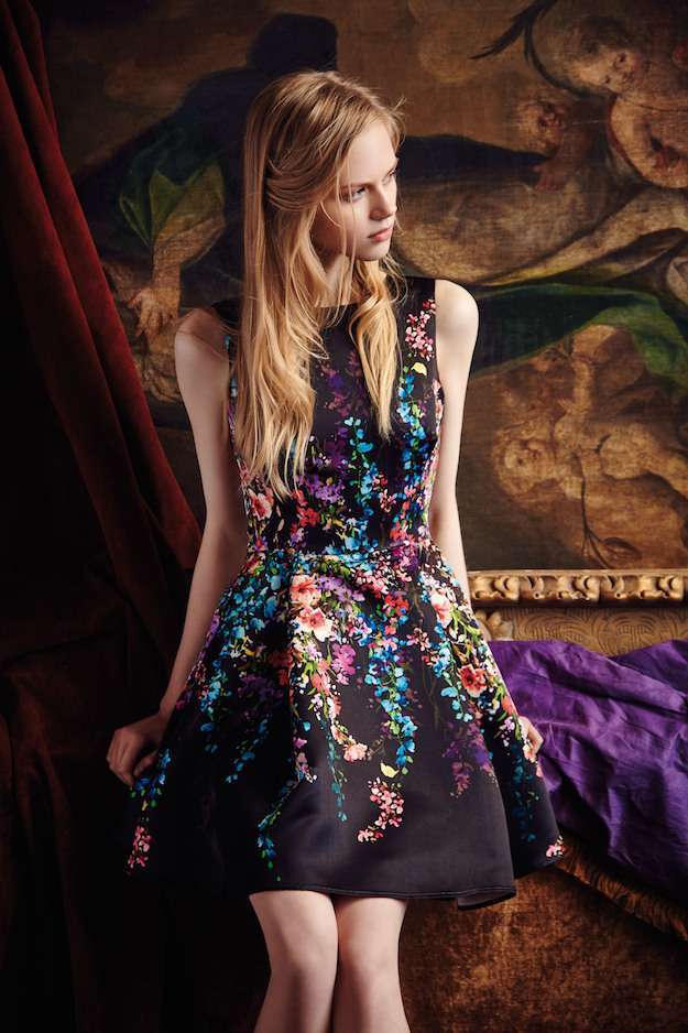 The Pre-Fall 2016 is notably marked by floral and graphic patterns, metallic skirts, ruffles and sheer sleeves. Velvet, suede and leather are particulary present.