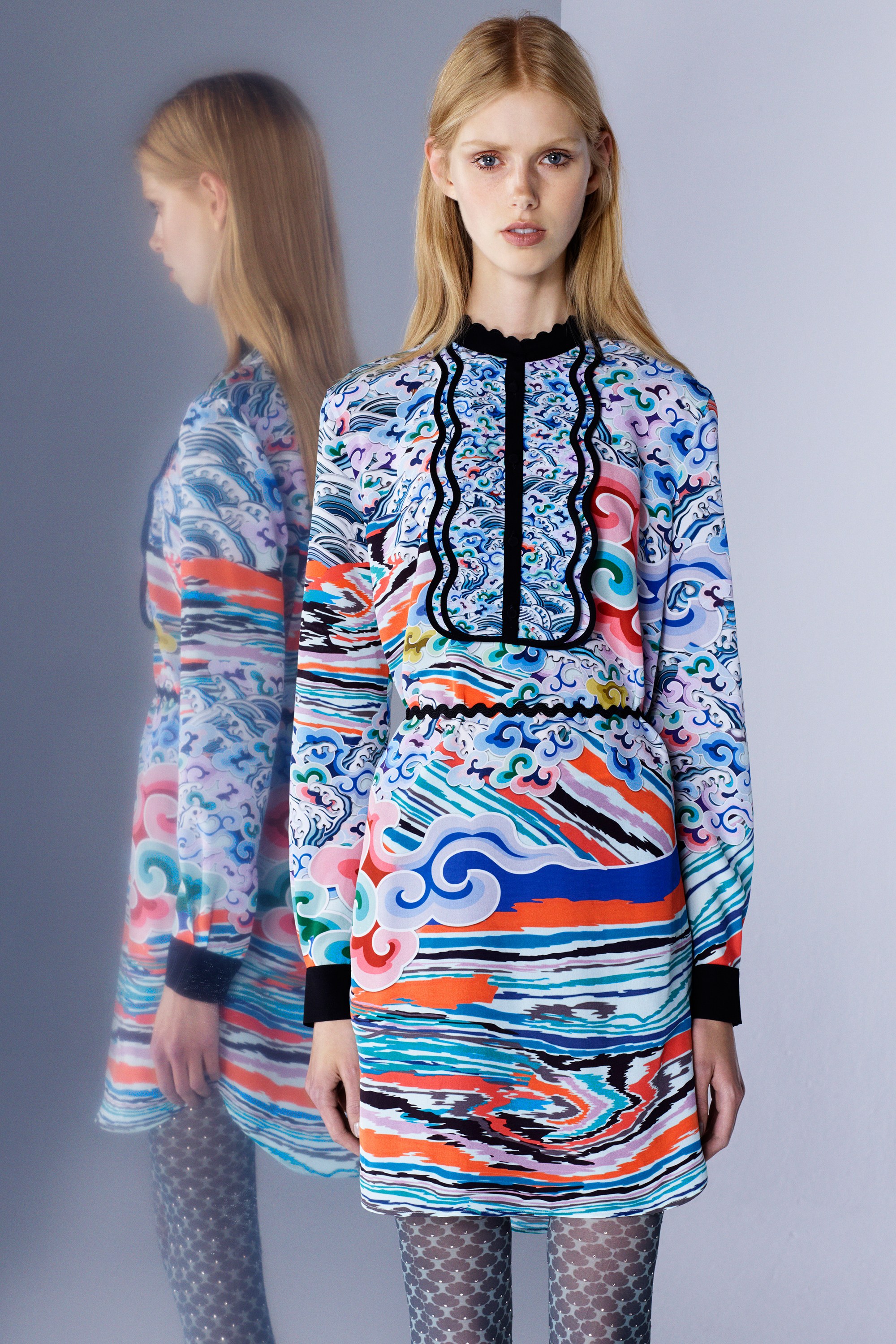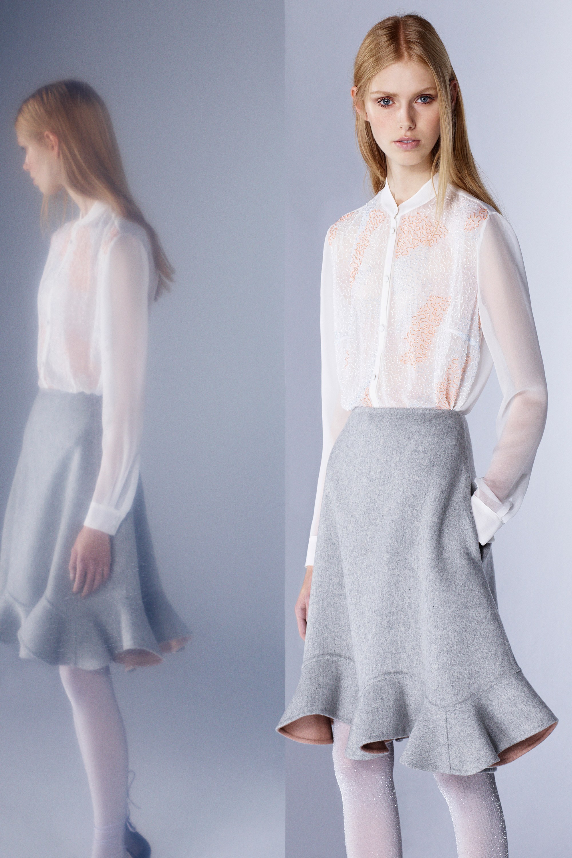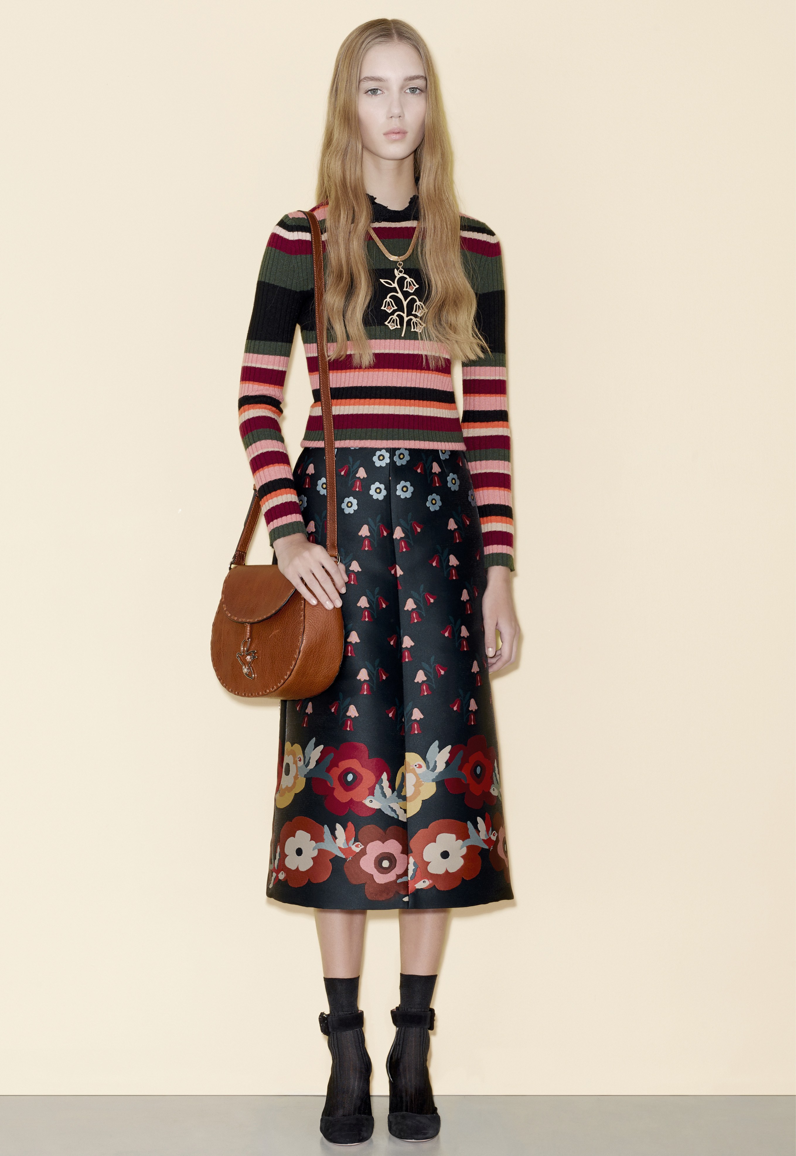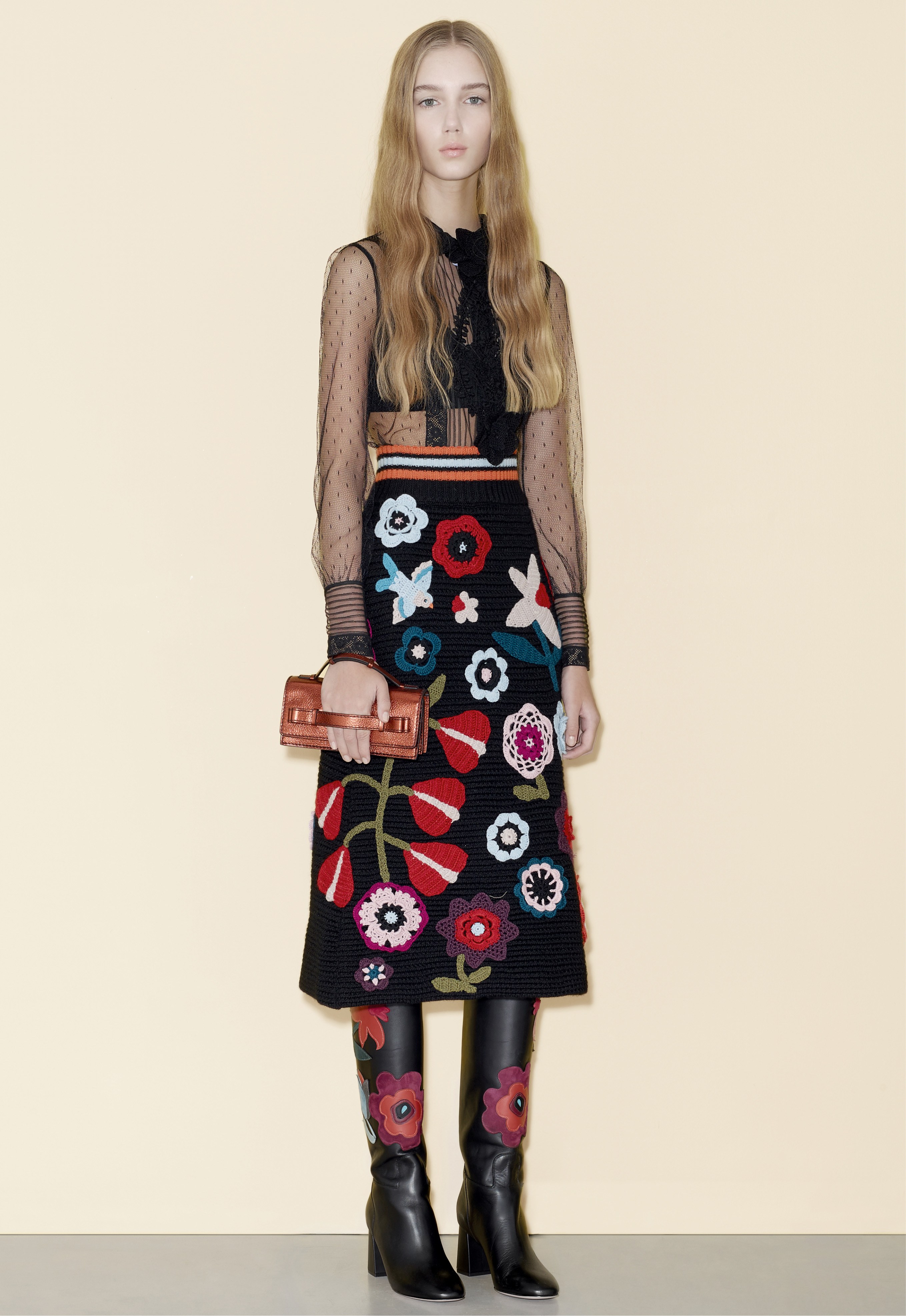The Pre-Fall 2016 is notably marked by floral and graphic patterns, metallic skirts, ruffles and sheer sleeves. Velvet, suede and leather are particulary present.