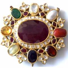 Each gemstone has a celestial significance : Ruby for Surya (Sun), Pearl for Chandra (Moon), Red Coral for Mangala (Mars), Emerald for Budha (Mercury), Yellow sapphire for Brihaspati (Jupiter), Diamond for Shukra (Venus), Blue sapphire for Shani (Saturn), Hessonite for Rahu (the ascending lunar node) and Cat’s Eye for Ketu (the descending lunar node).