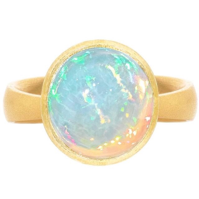 Opal is an hydrated silicum dioxide which reveals rainbow colours which change according to the angle of view. Opals exist in many colours : colorless, white, yellow, orange, red, yellowish brown, greenish, blue, gray, black and violet.