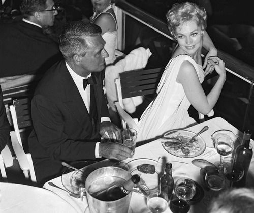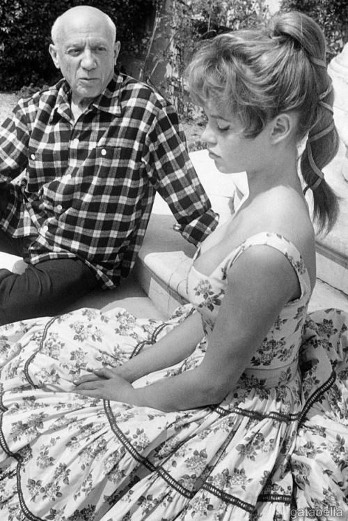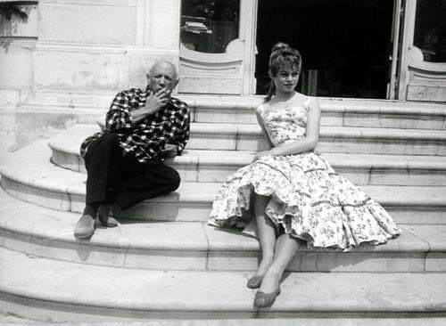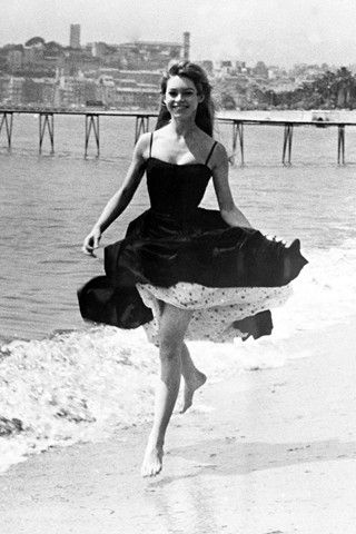 The French actress Brigitte Bardot and American actor Kirk Douglas in Cannes in 1953 :