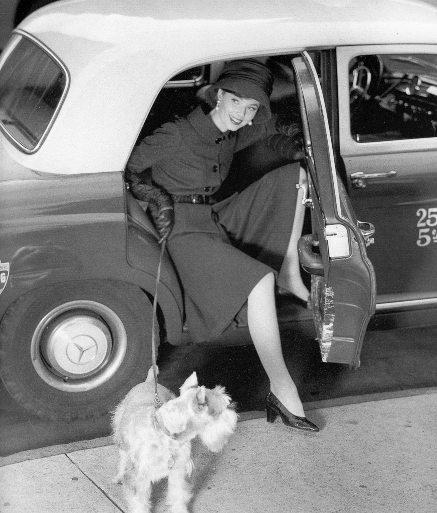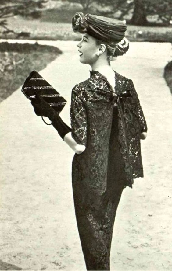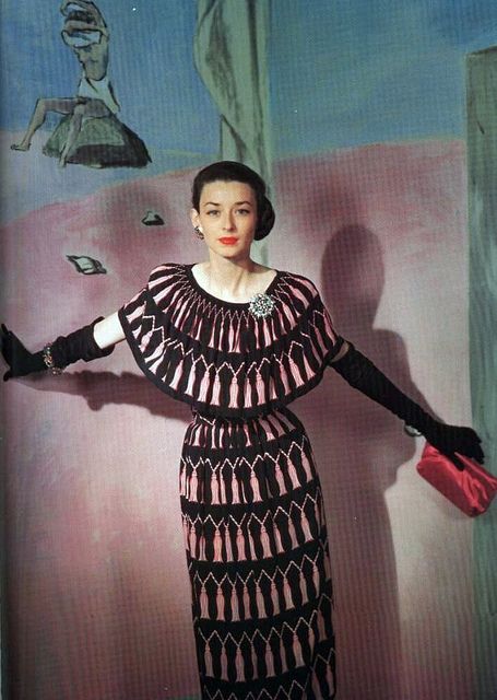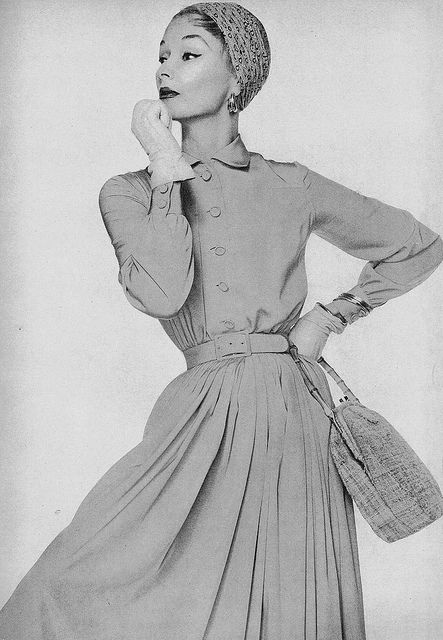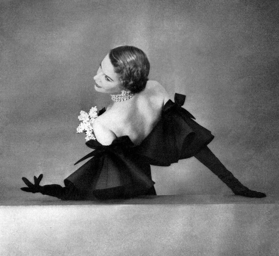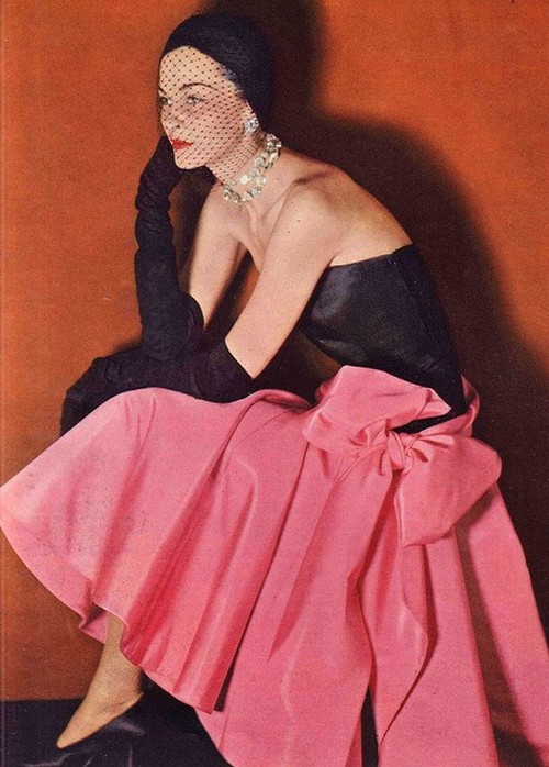 Model wearing a Norman Norell dress for Harper’s Bazaar 1950