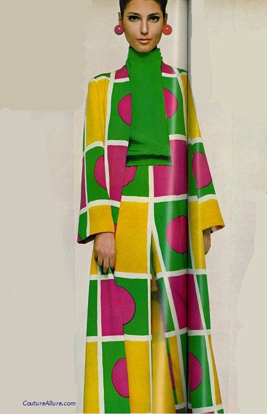 Ann Turkel in shimmering pull-over and pants by Norman Norell for Vogue US 1966