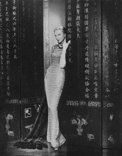 Stanley Grafton Mortimer Jr (Babe Paley) wearing a Norman Norell dress for Vogue in 1946