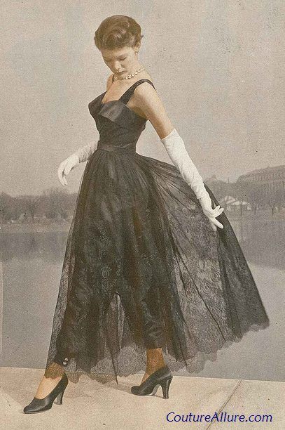 Evelyn Tripp wearing a long evening skirt by Norman Norell for Harper’s Bazaar 1956