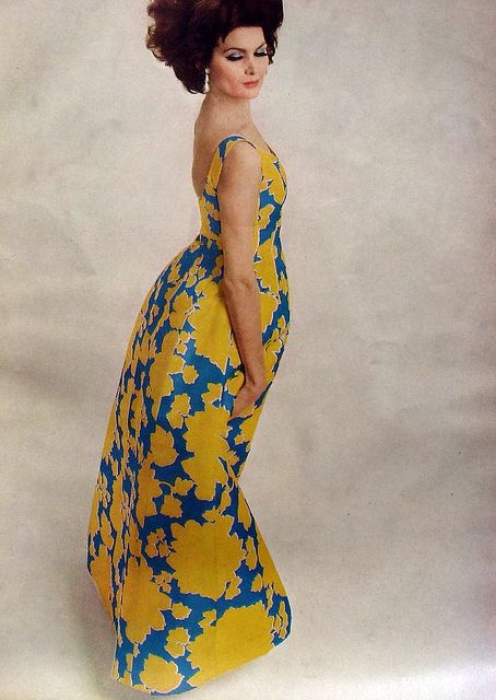 Model Wilhelmina Cooper wearing a creation by Norman Norell for Vogue 1965