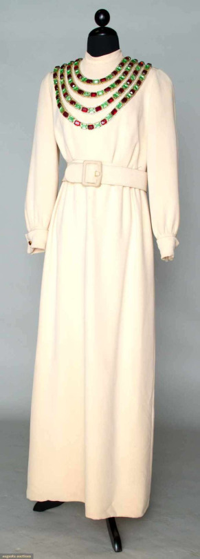 Norman Norell (1900-1972) was an American fashion designer who dressed beautifully women from his first Traina-Norell collection in 1941 to his death in 1972. His dresses were very elegant, feminine, sophisticated and glamour. He often embellished dresses with strass and beads but also with details such as bows and Peter Pan collars. He is also known for the high-waisted (empire-line) dresses, sailor style dresses and the chemise dresses.