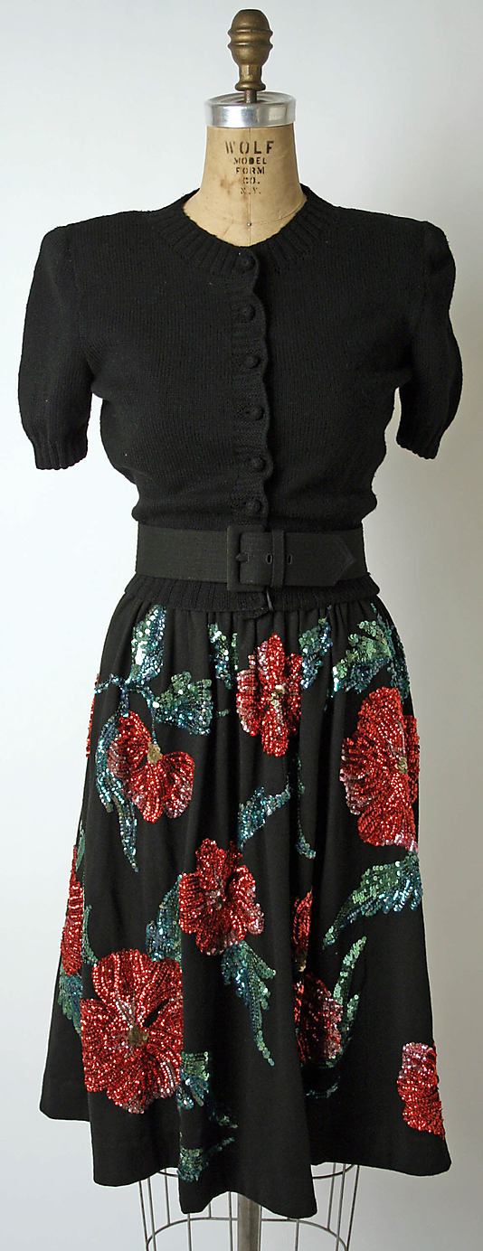 Model wearing a suit by Norman Norell for Harper’s Bazaar 1944