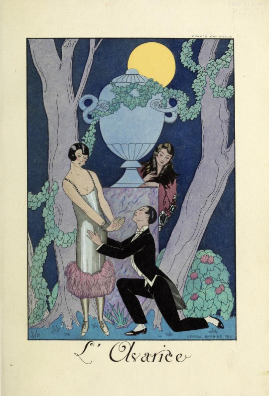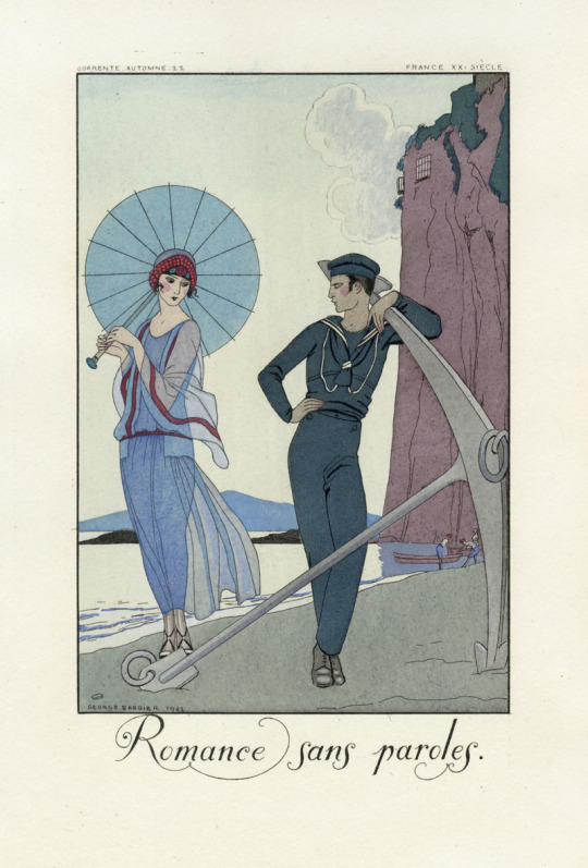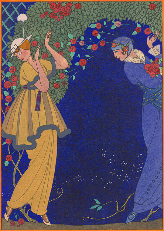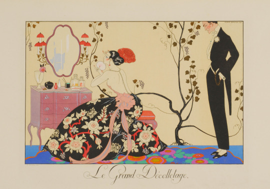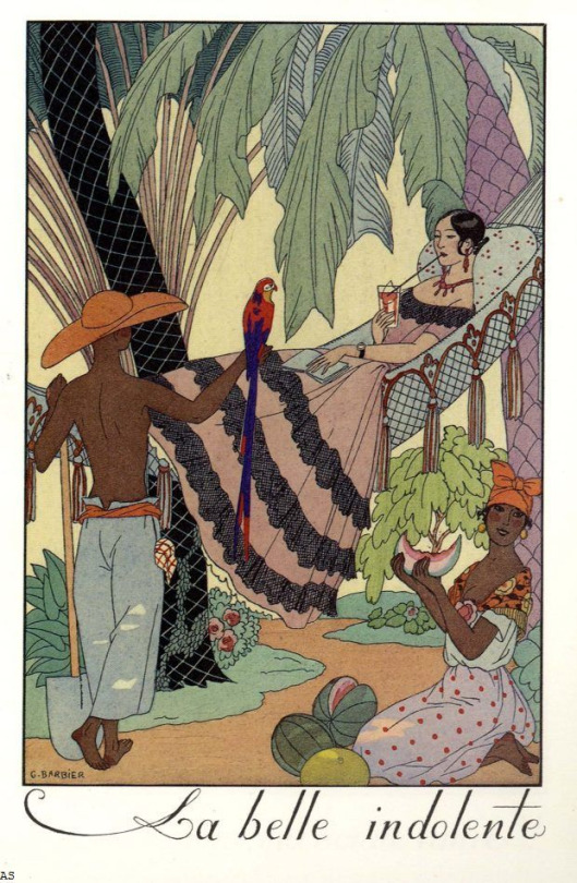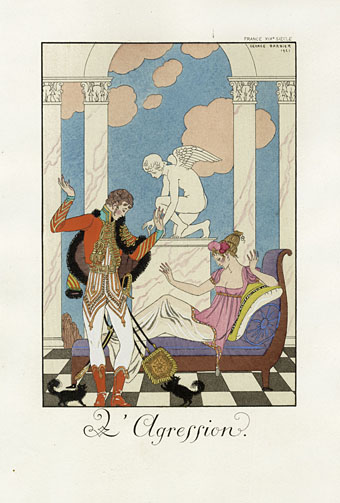George Barbier (1882-1932) was a French fashion illustrator and painter. He studied at the Ecole des Beaux Arts (like André Édouard Marty and Georges Lepape). He is the most famous Art Deco illustrator. He drew fashion illustrations for “La Gazette du Bon Ton”, “Journal des dames et des modes” and Harper’s Bazar. He published several books ; his masterpiece is “Falbalas et Fanfreluches”. It is a series of pochoir print portfolios published from 1922 to 1926. His work was namely influenced by exotism and orientalism.