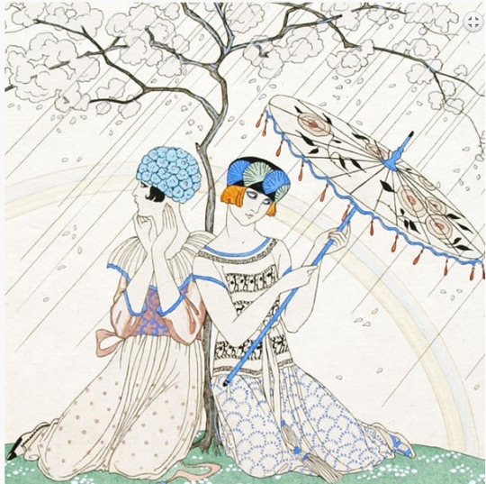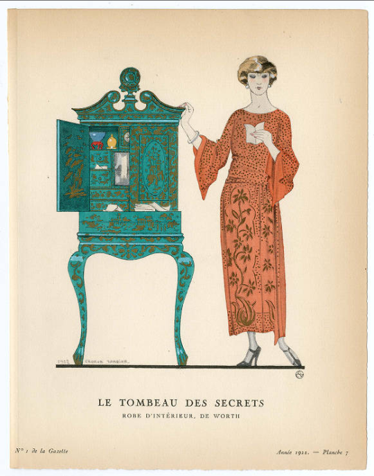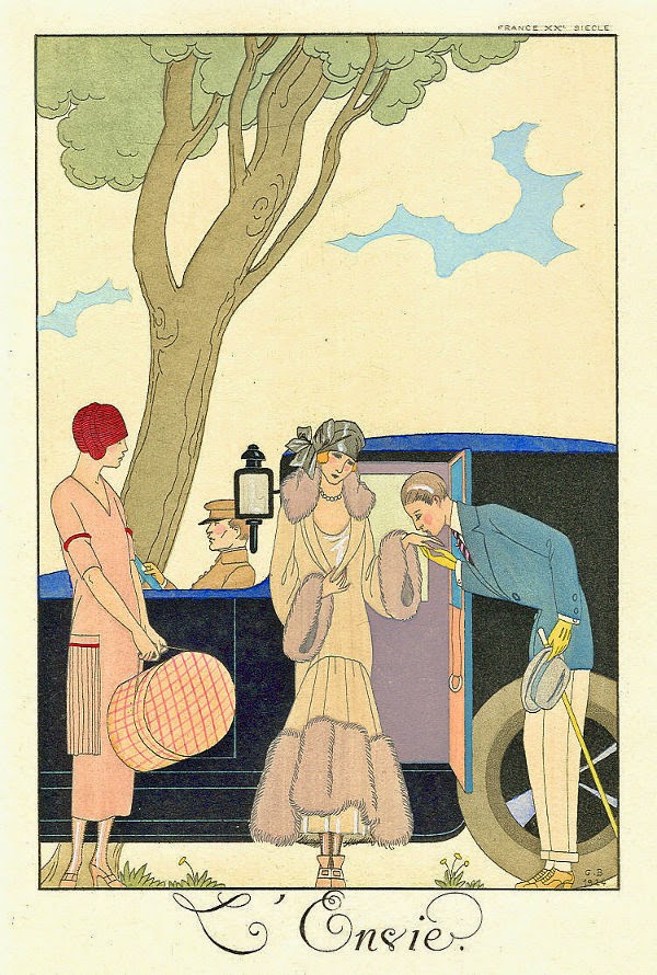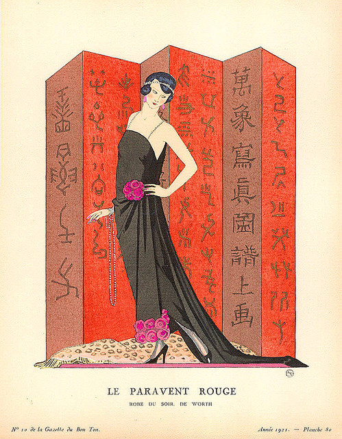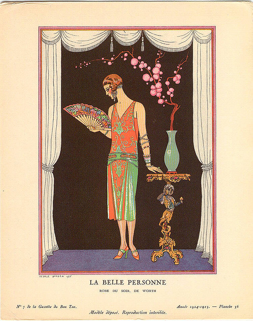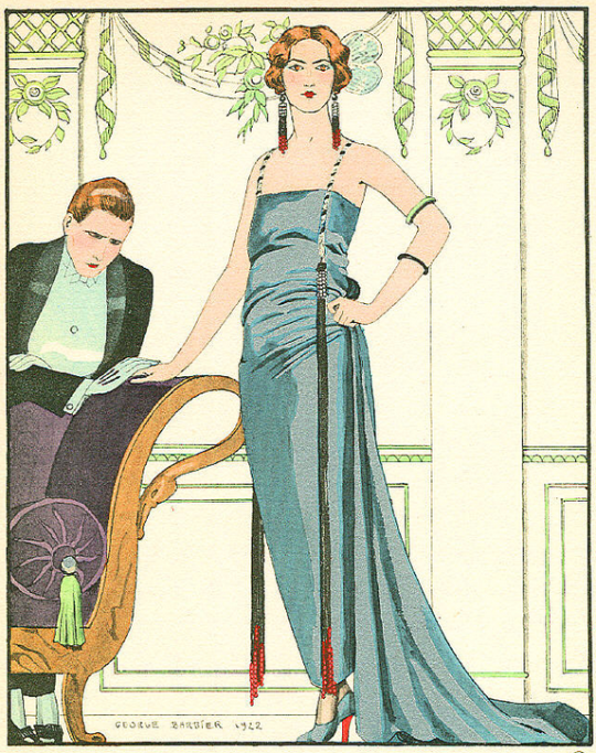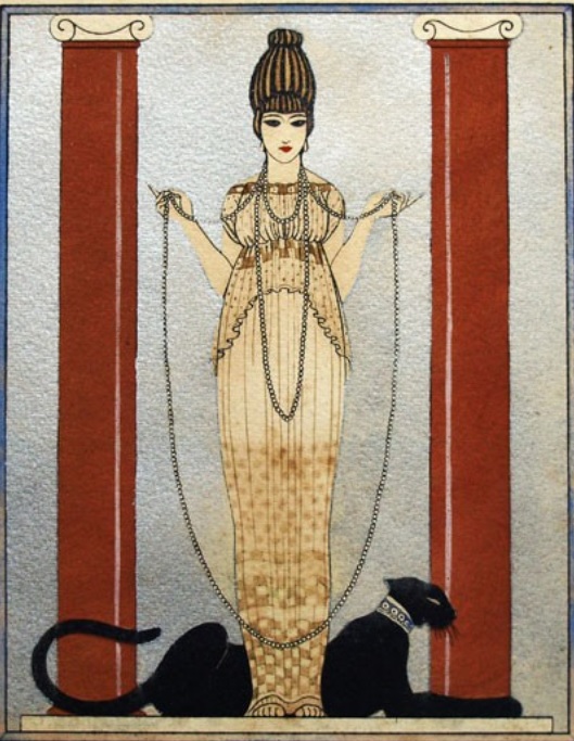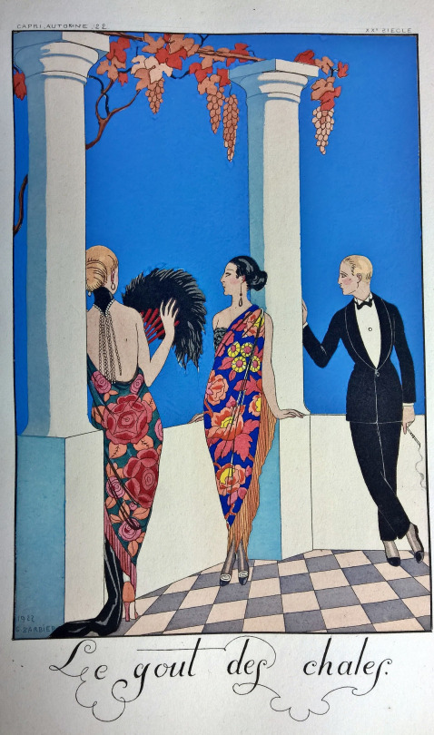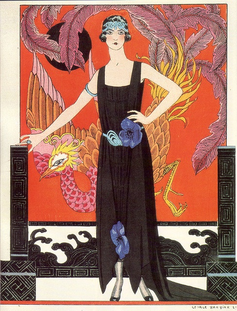 He is considered as the master of Art Déco. Art Déco (1920-1939) is an artistic movement emerging in reaction to the Art Nouveau. The name “Art Déco” comes from the Universal exhibition taking place in Paris, in 1925. The Art Déco style was applied to all types of art (architecture, jewelry, textiles, furniture, painting…). It was characterized by geometric shapes, bright colours , new materials (aluminium, plastics, lacquer…) and a taste for exoticism. I have a wonderful book about George Barbier, Hiroshi Unno, George Barbier: Master of Art Deco: Fashion, Illustration and Graphic Design, 2012.