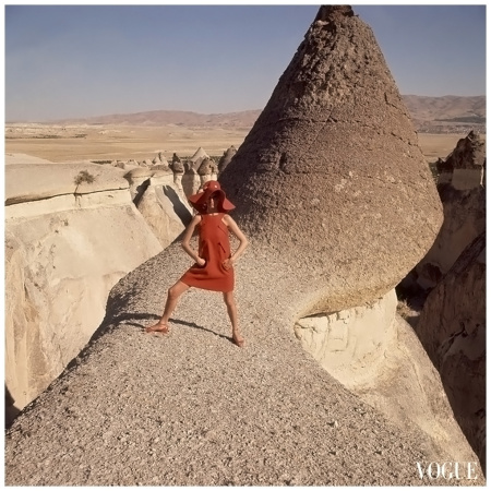 ca. 1952, Goreme, Turkey — Model in Goreme, Turkey, wearing fly-front yellow linen smock by Hannah Troy. — Image by © Condé Nast Archive/CORBIS