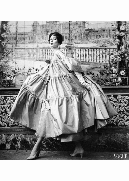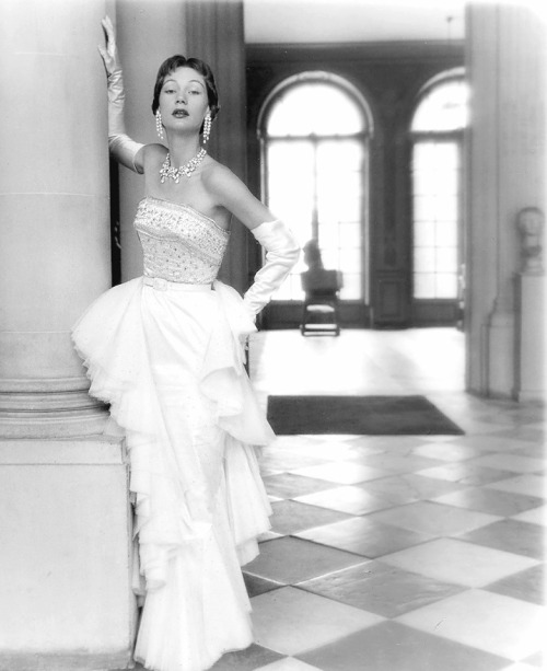 Nina de Voogt in evening gown by Balenciaga for Vogue October 1951