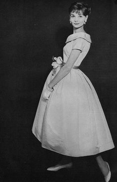 Model Suzy Parker in collared blouse and half-circle skirt