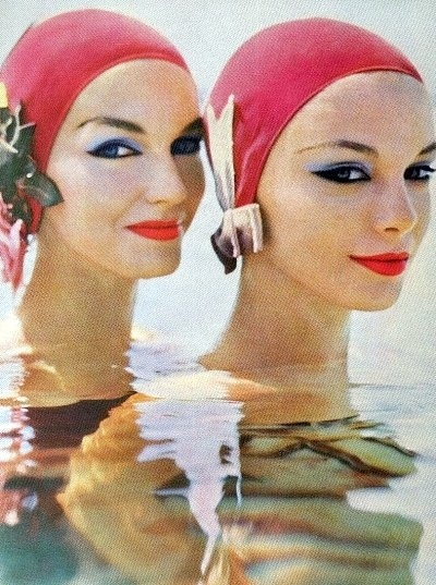 Model in a red swimsuit, 1958