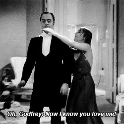 “My man godfrey” was directed by Gregory La Cava in 1936 and starring Carole Lombard and William Powell. “A scatterbrained socialite (Carole Lombard) hires a vagrant (William Powell) as a family butler.” It is a lovely and funny movie ; the shower scene is excellent !