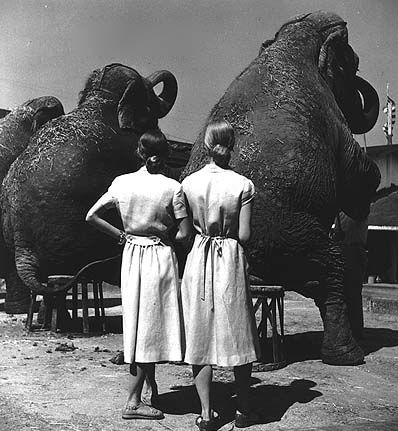 Twins at the beach, 1955