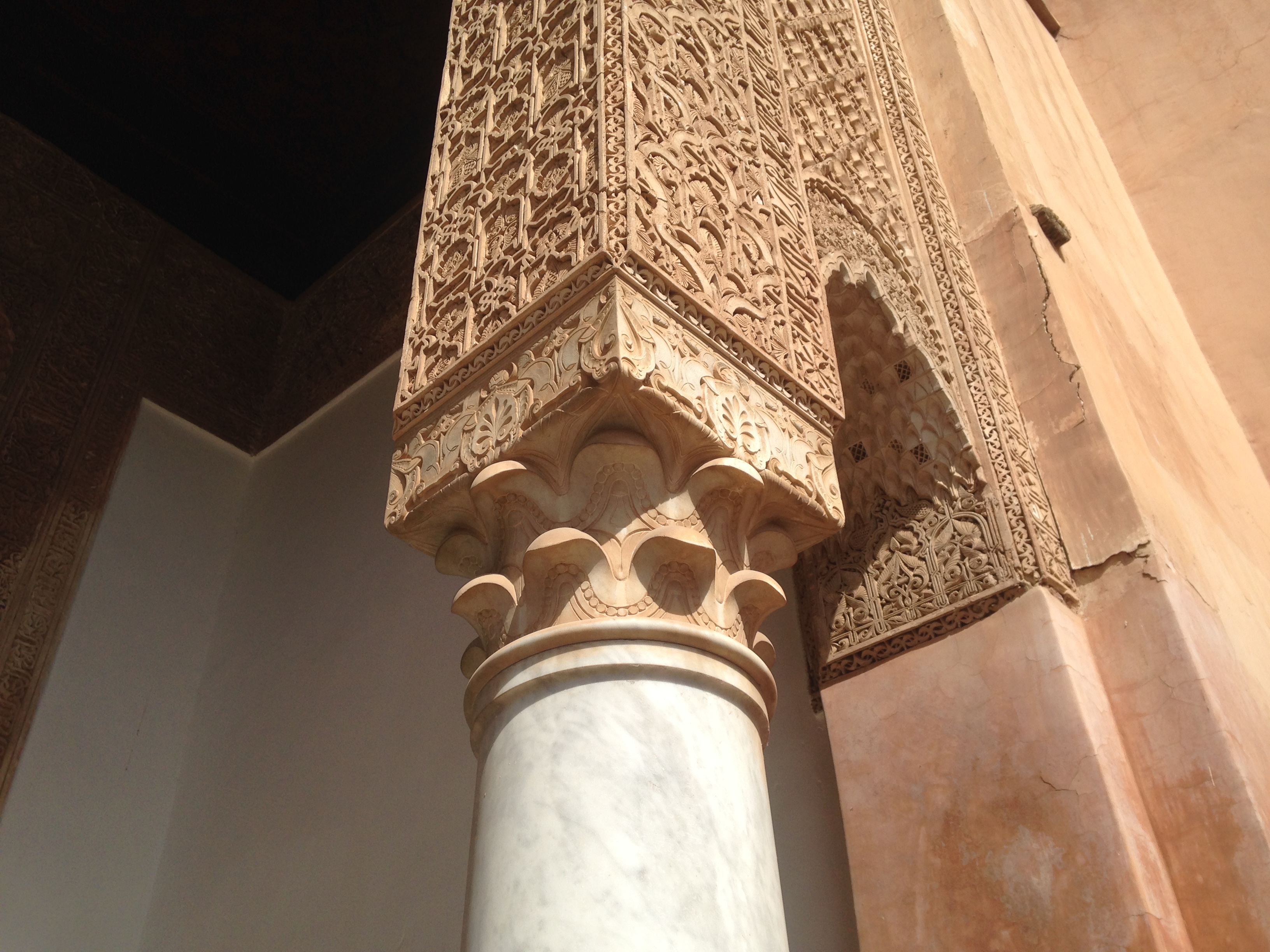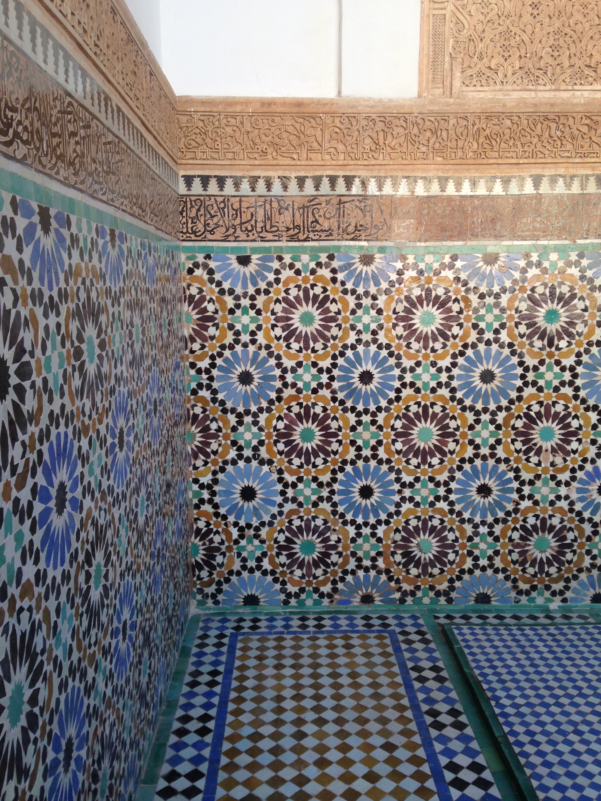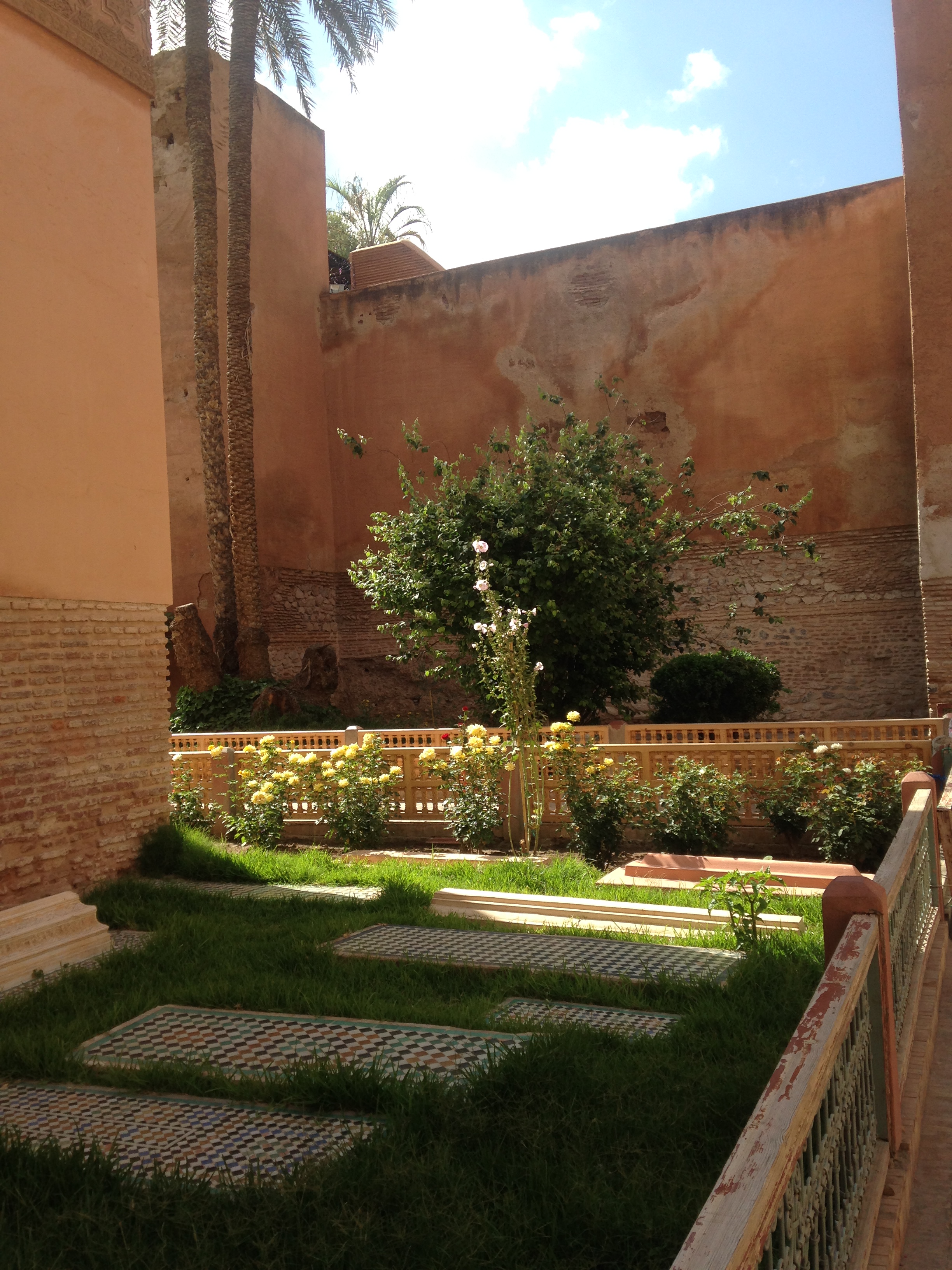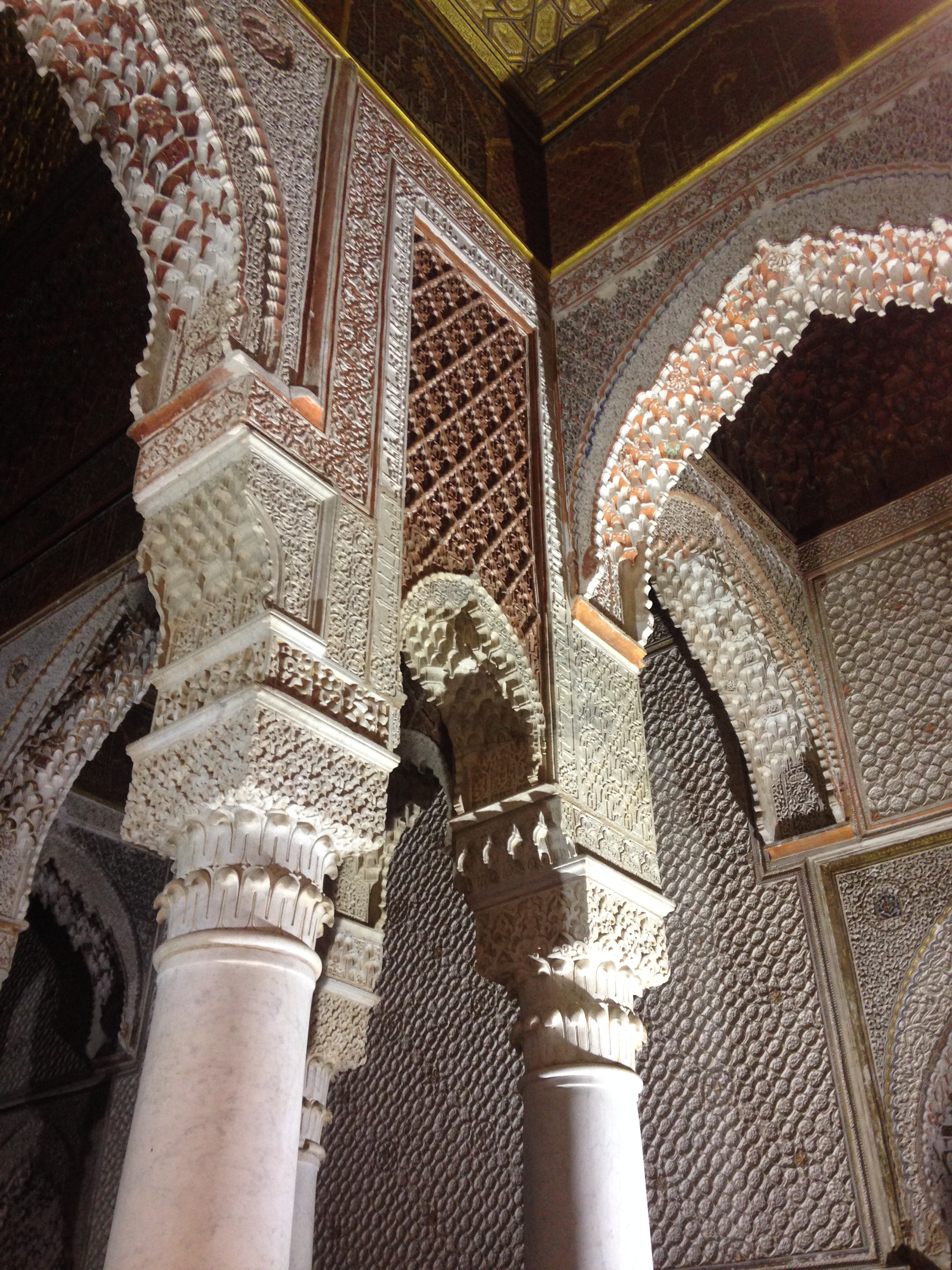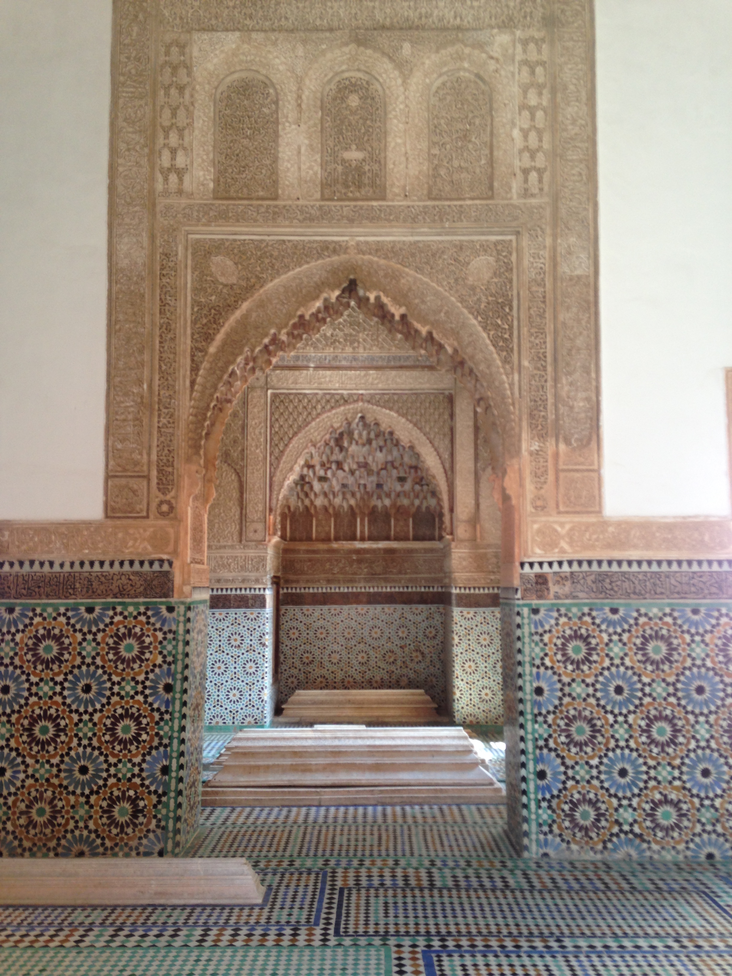 The decoration is fabulously rich, refined and colorful : carved marble and wood, multicolor geometric mosaics, domed ceilings…. The more spectacular chamber is the “Hall of Twelve Columns” with marble columns, decorated doors and ceilings. Besides, the tombals are in a pretty garden adorned by flowers and palm trees.